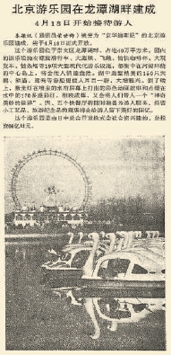 開門營業後的第一個“六一”兒童節,北京遊樂園深切體會到了北京人對於新鮮事物的渴望和熱情。1萬多遊人從北京城的各個地區涌入北京遊樂園。