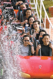 2007年5月,遊客在北京遊樂園裏開心地玩著激流勇進。(程功 攝)