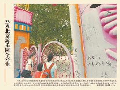 自5月中旬“北遊”閉園準備拆除的消息公佈後,許多“70後”“80後”紛紛趕來拍照留念,並在大門口斑駁的鐵欄杆上留下告別的話語。(2010年6月17日《北京日報》5版,《23歲北京遊樂園今停業》)