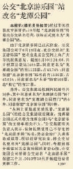 幾個月後,“北京遊樂園”也正式退出了公交站名行列,該站正式更名為“龍潭公園”站。(2010年7月2日《北京日報》8版,《公交“北京遊樂園”站改名“龍潭公園”》)