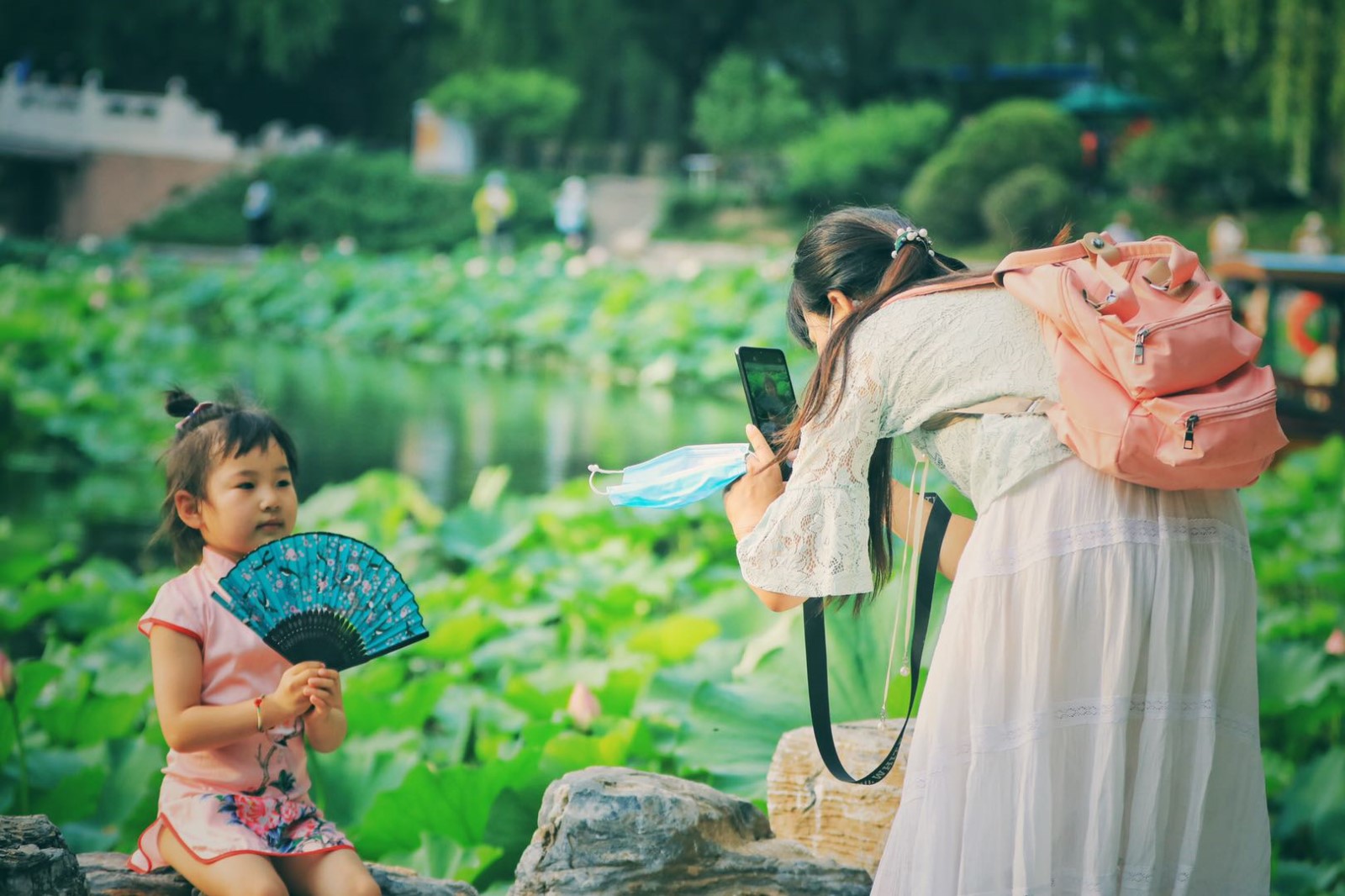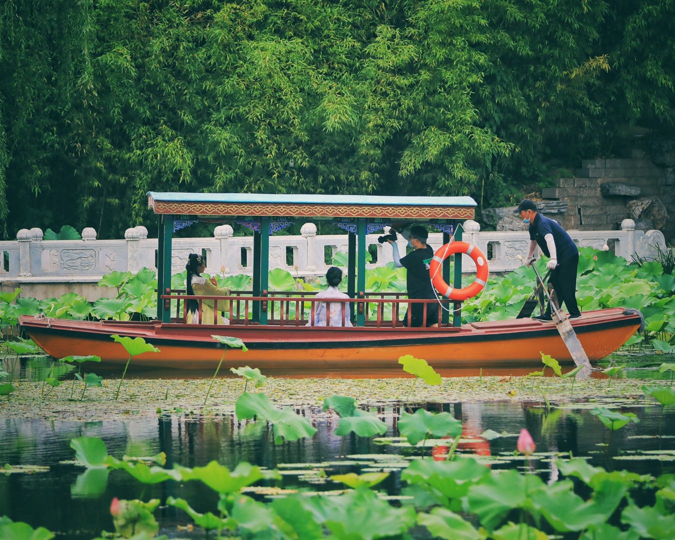 夏至过后,北京紫竹院公园的荷花随着阵阵微风散发出淡雅的花香。公园里“荷花渡”格外受市民游客追捧,身着古装的年轻人,一家老小的家庭,还有不少摄影爱好者都纷纷登船,伴随着小船的悠然划动,感受着荷塘美景。岸边,散步、运动、赏景的市民看到绿色的荷叶,粉红、白色的荷花近在咫尺,纷纷拿出手机和相机拍照。