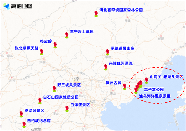 环球度假区、八达岭、古北水镇、雍和宫、颐和园等热度较高,八达岭野生动物园、八达岭水关长城等景区距离较近,京藏高速八达岭段和部分出口可能出现短时车辆排队的情况。