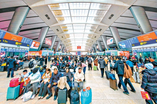 2月15日是春节假期第一天,记者从国铁集团获悉,全国铁路预计发送旅客1395万人次,计划加开旅客列车1568列。其中,北京地区发送78.8万人次,国铁北京局计划增开哈尔滨、长春、沈阳、郑州、武汉、长沙、太原、西安等地区方向的旅客列车163列。