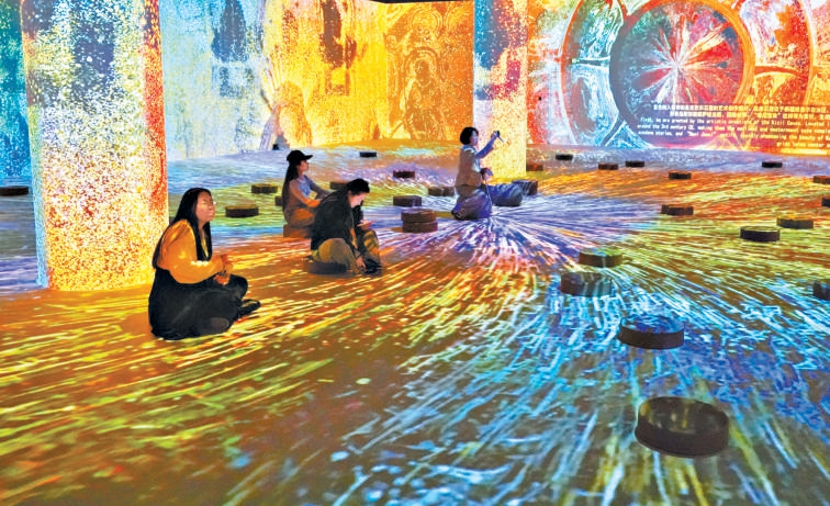 《华彩万象——石窟艺术沉浸体验展》让观众宛如进入光影的幻境中。(王海欣 摄)