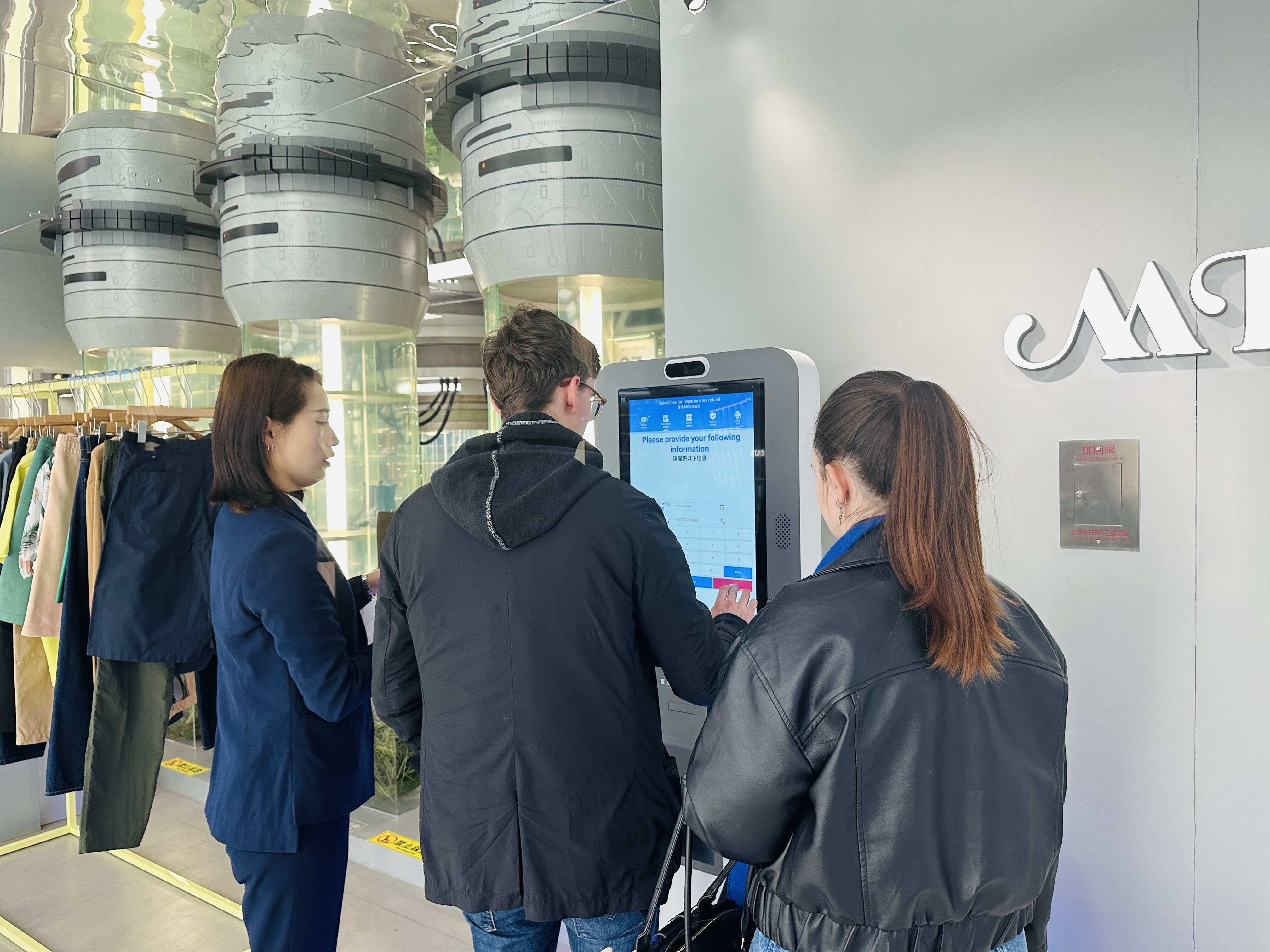 记者现场体验发现,自助开单机操作页面简洁,可选择英文、俄文等7种语言。按照指引,游客只需将护照放置在指定识别区域,设备便可自动完成身份识别与信息审核。填写入境日期和联系方式,扫描购物发票二维码,最后触屏签字确认,短短几分钟,一张完整的退税申请单即可打印完成,全程无需人工干预。