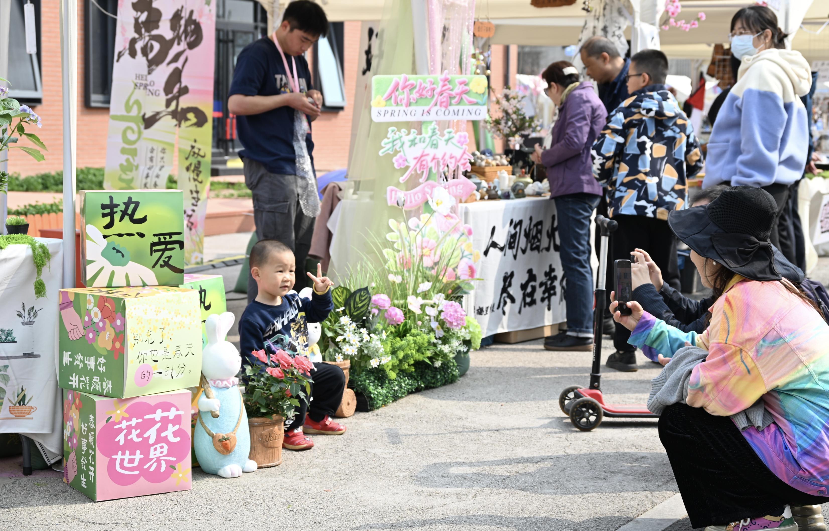 200余个特色摊位有序排列,覆盖文创手作、非遗传承、园艺萌宠、亲子游乐、特色餐饮等多元业态,烟火气息浓郁。轻食、鲜榨果汁与地方风味小吃香气四溢,亲子游乐区童趣满满,成为家庭出游的惬意选择。园区内还精心设置多处打卡点,入口处的花艺装置、休息区的艺术布景与散落各处的创意装置相映成景,随手一拍便是氛围感十足的春日大片。