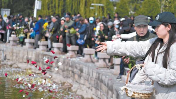 昨天上午,北京长青生命纪念园内松柏含翠,生态葬纪念碑巍峨矗立。以“春思寄远,生命长青”为主题的2026年北京市生态葬清明公祭仪式在此举行,400余名生态葬逝者家属及社会各界群众参与,以庄重简约的方式追思亲人、礼赞生命。