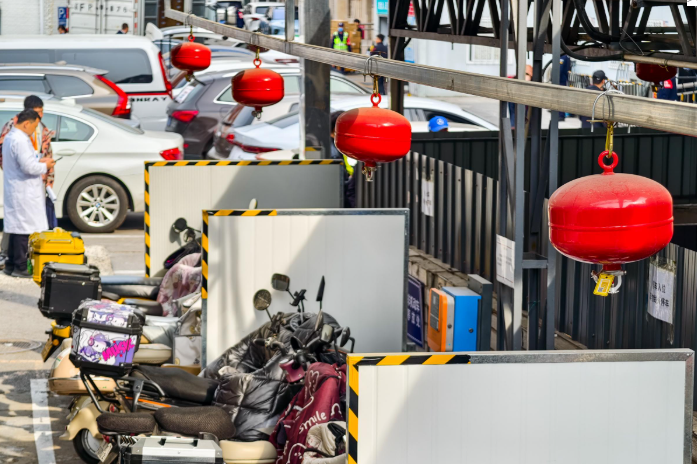 走进院内非机动车停车棚,还可以看到头顶悬挂的一个个红色灭火装置。“我们将原有可燃车棚全面更换为不燃材料,增装防火隔板,在停放区与主体建筑之间筑起物理‘防火墙’。”岑强介绍,针对患者“充电难”痛点,医院新增智能充电桩1组共10个充电端口,尽量满足患者临时充电的需求。
