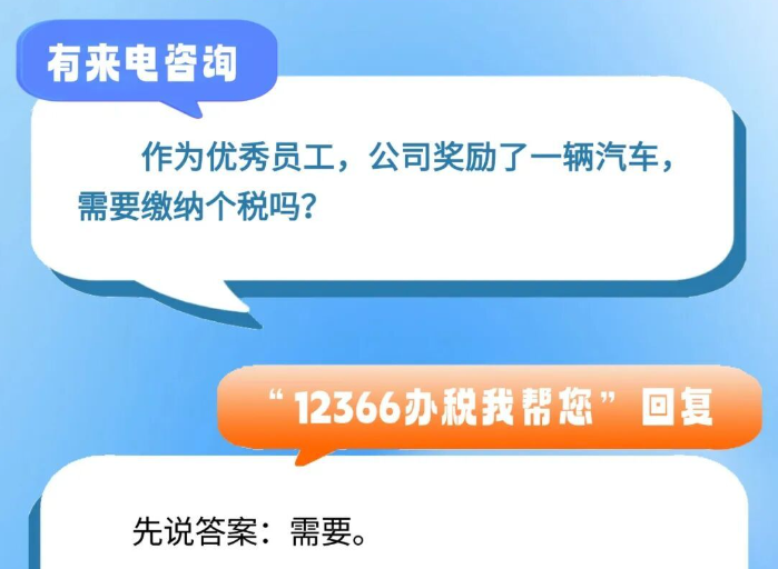 有来电咨询 :作为优秀员工,公司奖励了一辆汽车,需要缴纳个税吗?一起来看看回复吧↓