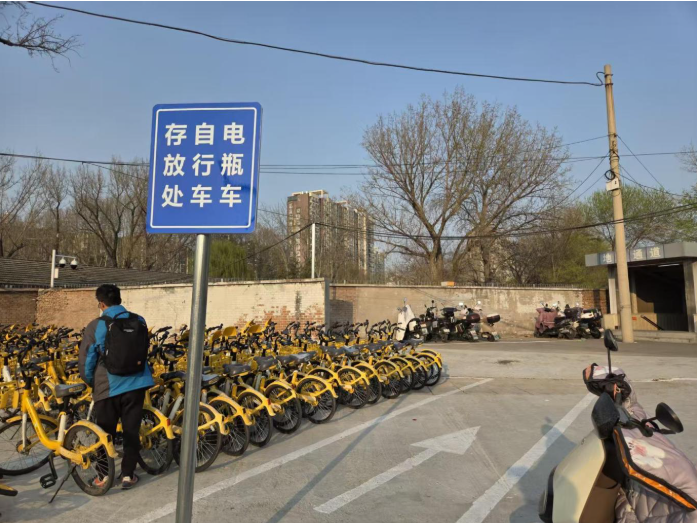 如今,停车区施划了停车标识线,安装了引导指示牌,居民常骑的共享单车、自行车、电动自行车都有了新去处。