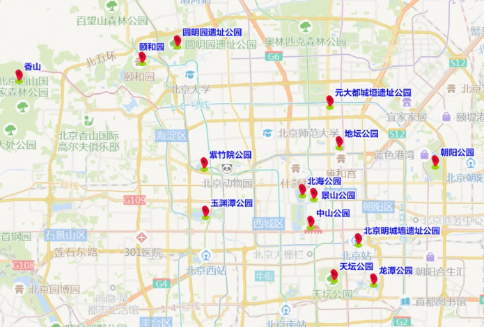 近期,部分公园在最佳赏花期内,预计本周末仍是赏花客流高峰期,市民春季出游活动增多,去往香山、景山、北海、圆明园、天坛、中山公园、动物园、龙潭湖、朝阳公园等公园赏花踏青的客流量增加,部分网红景点周边也将出现车流集中的情况。八达岭、环球度假区、故宫、雍和宫、后海—鼓楼—南锣鼓巷地区、首钢园等地标景区热度较高。预计周末期间,香泉环岛、西直门外大街、西三环等公园周边道路车流集中,交通压力较为突出。