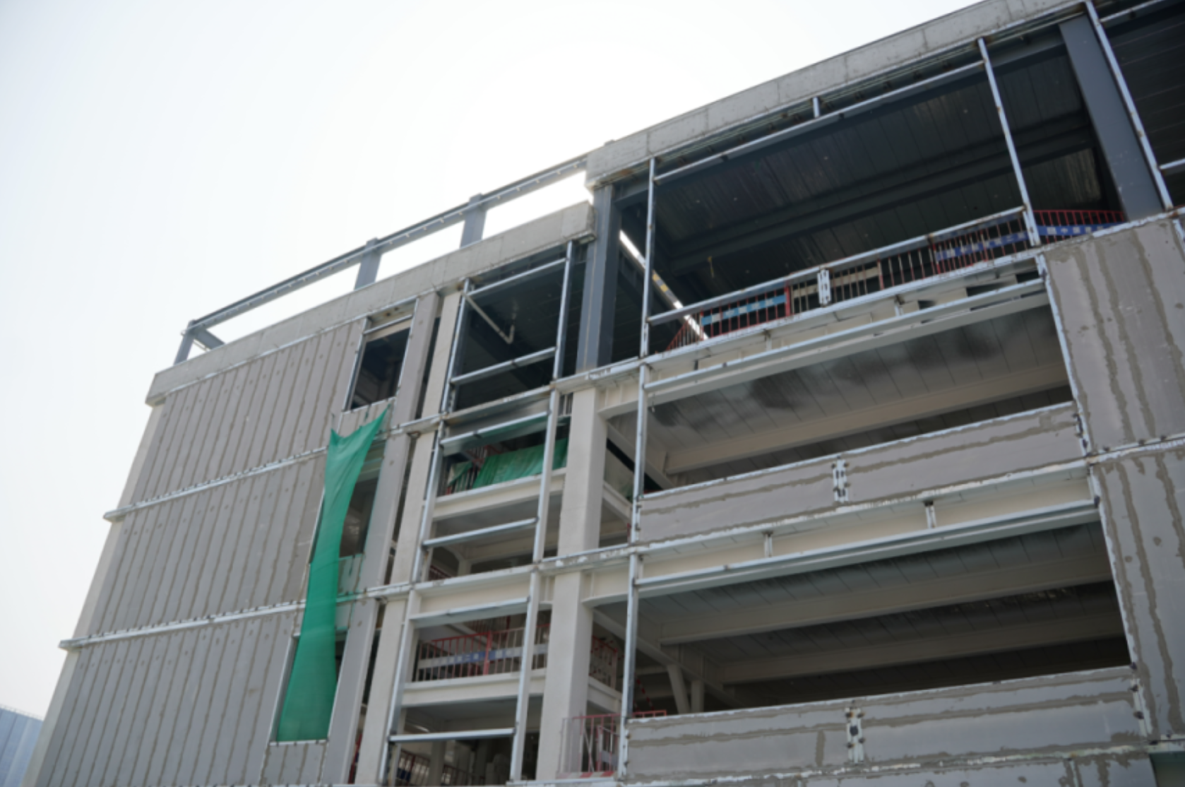 在推进工程建设的同时,项目团队高度重视与周边社区的和谐共建。项目东、西、北三侧紧邻居民区,为最大限度减少施工对周边的影响,施工期间项目团队主动优化技术方案,例如,在地基与基础施工阶段将原设计的“柱锤冲扩挤密桩”地基处理方式调整为“长螺旋混凝土灌注桩”,在提升地基承载力与稳定性的同时,显著降低了振动与噪音。此外,现场还通过设置隔音围挡、防尘网与喷淋系统、落实车辆冲洗等措施,全方位控制扬尘和噪音。项目相关负责人表示:“我们始终坚持友好共建、绿色施工,致力于把对居民生活的干扰降到最低。”