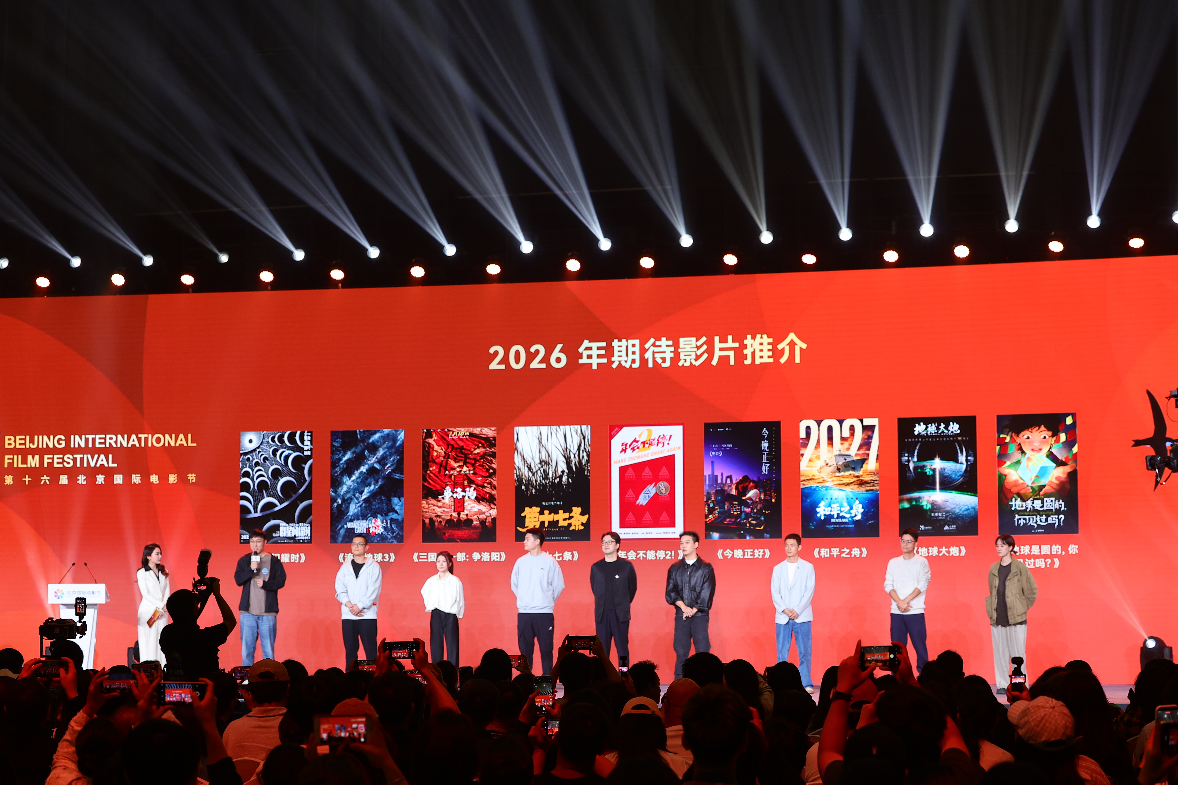 科幻题材成为本场推介的重头戏。首先登台的《群星闪耀时》编剧胡晓曦介绍,影片讲述2035年一艘载人飞船返航途中突遇引力危机,一段神秘信号改变所有人命运的故事。“这部作品不仅有新鲜的科幻设定,也有让人热血沸腾的情感力量。”该片由黄建新监制、章笛沙执导,黄渤、吴磊、高叶、孙阳等主演,全程获得国家航天局及专业科学家团队支持,将于2026年暑期档上映。
