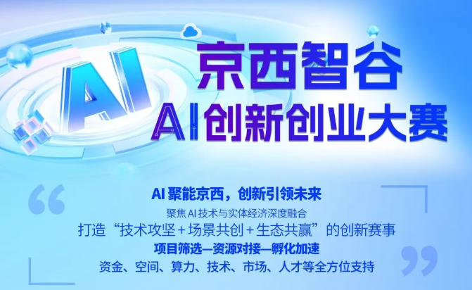 大赛以“AI聚能京西,创新引领未来”为主题,聚焦AI技术与实体经济深度融合,打破传统赛道边界,打造“技术攻坚+场景共创+生态共赢”的创新赛事平台,推动AI技术在垂直领域的商业化落地,通过“项目筛选—资源对接—孵化加速”,吸引优质AI项目落地京西,进一步擦亮“京西智谷”品牌。大赛将邀请知名投资人与创业导师及头部企业家为参赛项目提供全程创业辅导和能力加速,为参赛项目提供资金、空间、算力、技术、市场、人才等全方位支持,为创业者持续赋能,培育新质生产力,助力北京建设人工智能第一城。