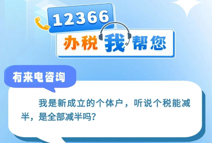 有来电咨询 :我是新成立的个体户,听说个税能减半,是全部减半吗?一起来看看回复吧↓