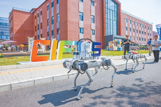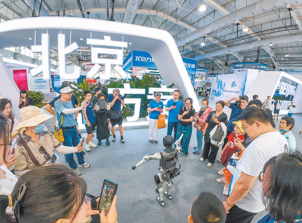 北京一轻展区,绿色制造、人工智能、新材料研发及民生服务领域的首都国企创新成果,吸引观众驻足参观。