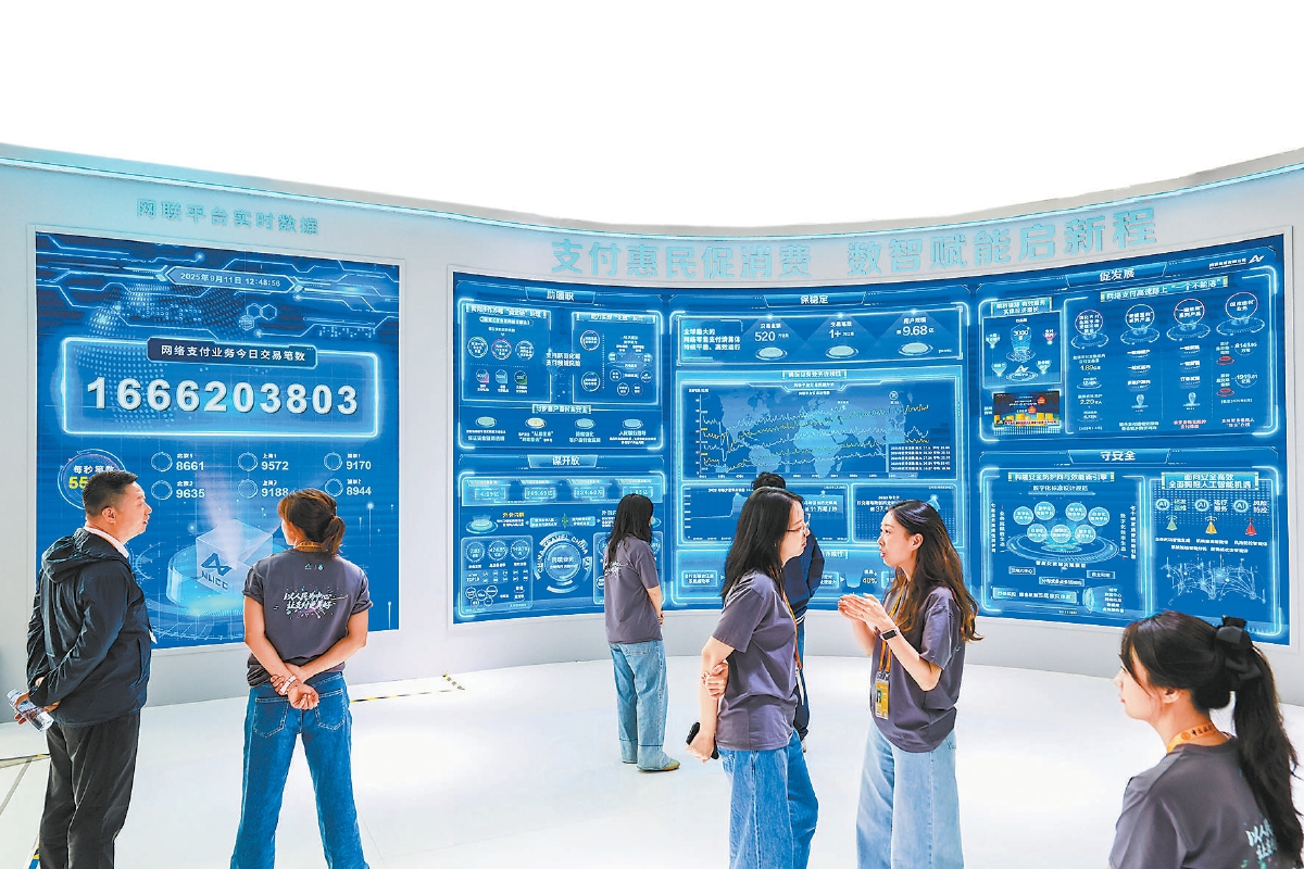 在服贸会金融服务专题展,网联清算公司在展台设置实时交易数据直播展示区。