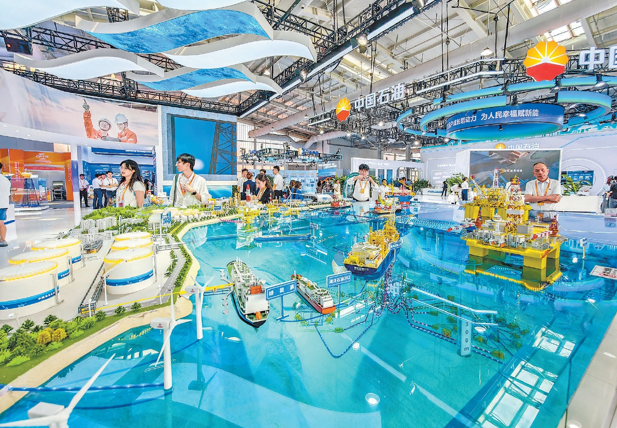 服贸会环境服务专题展上,展示了中国海油产业集群数智沙盘。
