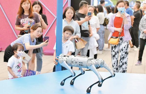 5月26日,“2023全球首發節暨硬科技嘉年華”在中關村壹號正式啟動。活動現場,一款機器狗在機甲秀場進行展示。(鄧偉 攝)
