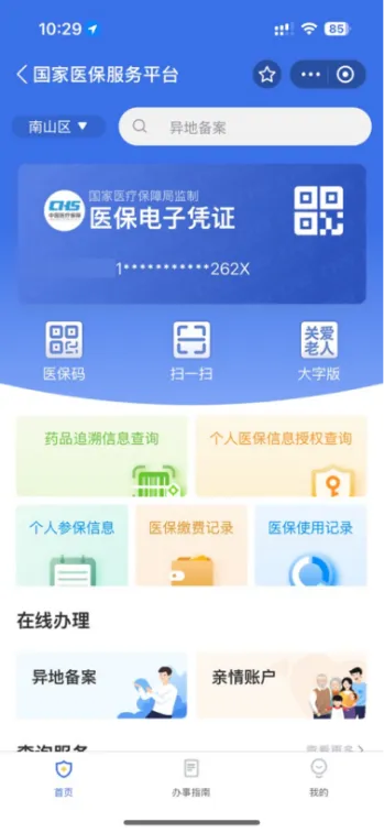 打開支付寶首頁,搜索“國家醫保服務平臺”或“醫保”,點擊小程式即可快速進入醫保服務。