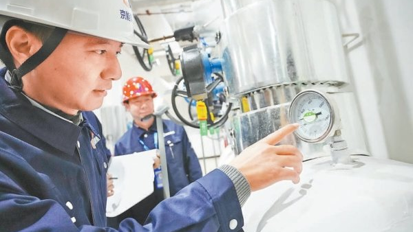 四惠地鐵站不遠處,京能集團所屬北京熱力朝二分公司地鐵平臺3號熱力站源源不斷將熱力輸送至通惠家園小區的居民家中。熱力站內,3名頭戴安全帽的熱力工作人員正在對供熱設備設施進行日常巡視檢查。他們對一次供回水及二次供回水溫度、壓力、配電設施等儀器儀錶參數進行檢查,同時檢查管道、閥門及換熱設施有無泄漏,水泵運轉是否正常。