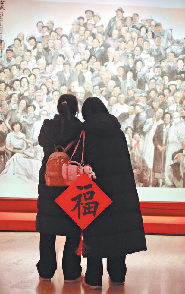 這個春節,到中國美術館看新年大展,成為許多市民“精神充電”的首選。館內人潮涌動,觀眾在《奔馬》的昂揚與《父親》的深沉中,感受經典作品傳遞的情感與力量;文創店裏,寓意吉祥的馬年好物備受青睞;商店集章處,人們排著隊,在冊頁上印下新春的足跡。大年初一清晨,還有數百名觀眾收穫由藝術家親筆書寫的福字,在翰墨香氣中,開啟一個充滿文化氣息的新年。