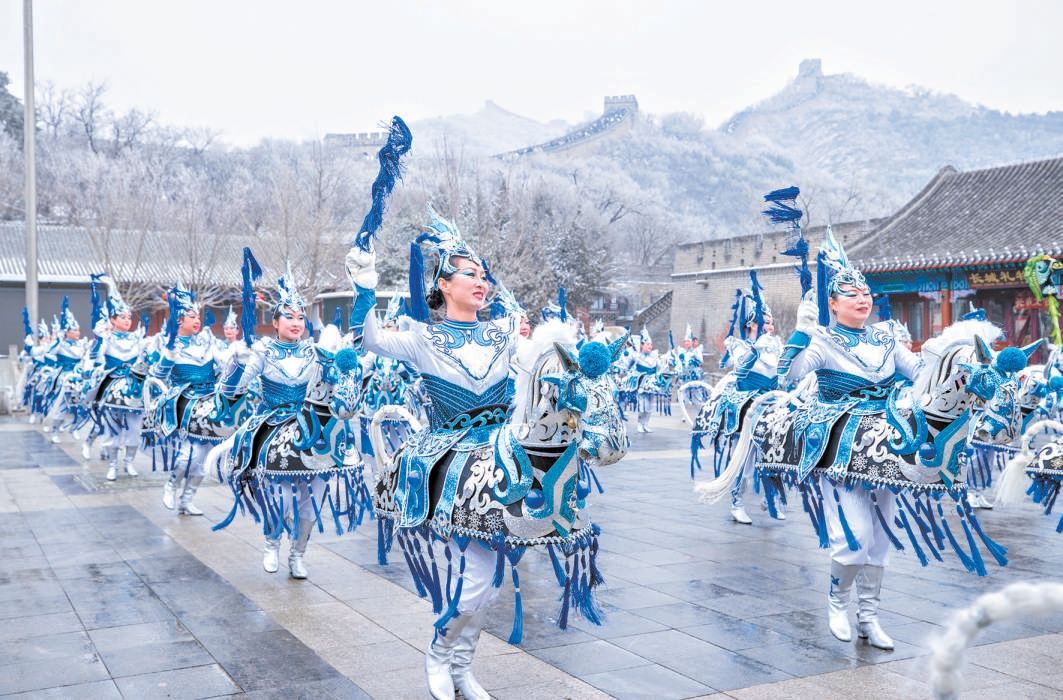 昨天,延慶區百人“冰雪竹馬”隊伍先後亮相八達嶺長城與世園公園,以非遺與冰雪、光影的跨界融合呈現一場視覺展演。