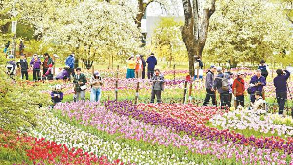 國家植物園8000平方米鬱金香花海進入最佳觀賞期。(程功 攝)