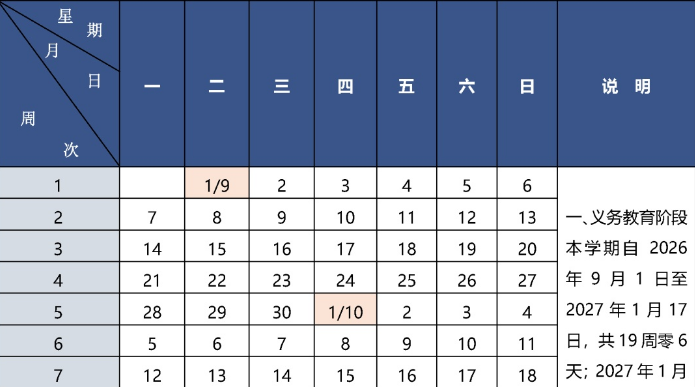 北京市中小學2026—2027學年度第一學期校歷