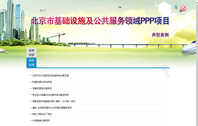推進政府和社會資本合作(PPP)項目以及政府採購資訊公開。設立"北京市基礎設施及公共服務領域PPP項目典型案例"專欄,公開軌道交通、高速公路、水務、生態建設與環境保護、能源、公共服務、棚戶區改造等重點領域PPP項目。及時公開《關於推進供給側結構性改革進一步做好民間投資工作的措施》等政策,引導社會資本參與基礎設施和公用事業領域市場化建設。在北京市政府採購網及時公佈政府採購項目採購文件、中標成交公告、採購合同、投訴處理結果等資訊。