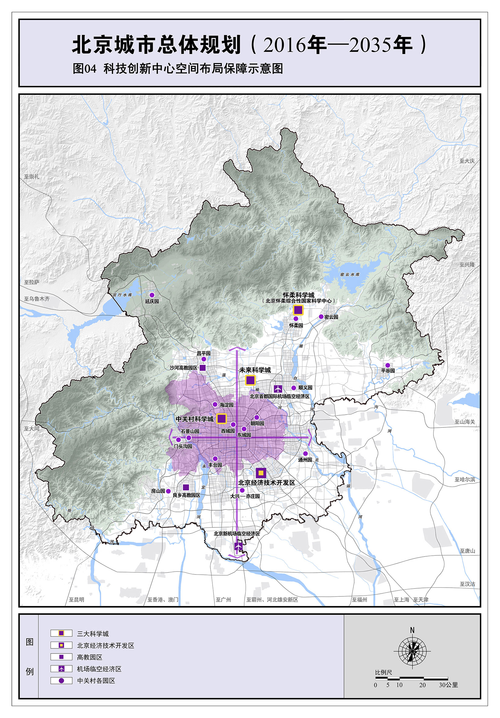 堅持提升中關村國家自主創新示範區的創新引領輻射能力,規劃建設好中關村科學城、懷柔科學城、未來科學城、創新型産業集群和“中國製造2025”創新引領示範區,形成以三城一區為重點,輻射帶動多園優化發展的科技創新中心空間格局,構築北京發展新高地,推進更具活力的世界級創新型城市建設,使北京成為全球科技創新引領者、高端經濟增長極、創新人才首選地。