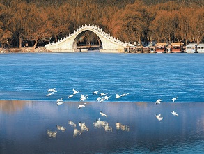 淺山如黛,碧波粼粼,幾十隻白天鵝悠然飛翔,不遠處是二百餘年曆史的玉帶橋。這是攝影愛好者張曉蓮昨天在頤和園拍下的照片。“這是今年在頤和園落腳的第五批天鵝了。”張曉蓮如數家珍:“前天傍晚,湖裏有55隻白天鵝。昨天早上再數,發現只有34隻了,還全是黃脖子黑腦袋的。看來在一夜之間,天鵝們悄悄換了一撥。”