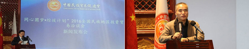 10月26日,中國民族貿易促進會在協會陽光禮堂舉辦“同心圓夢·綜援計劃”2016全國民族地區投資貿易洽談會新聞發佈會。各主辦單位、指導單位、相關支援部委代表及來自中央、北京、上海和香港等境內外媒體、記者出席新聞發佈會。