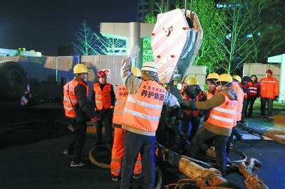 施工人員將手腕粗細的鋼絲繩反覆比量,務求吊裝工作萬無一失。