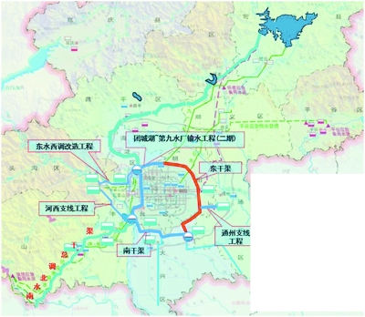 要知道,南水北調進京之前,北京市城區的水廠主要通過京密引水渠由北向南輸送密雲水庫的水,其他區(縣)由分散的管網開采地下水。南水進京後,與京密引水渠在頤和園旁的團城湖調節池對接,形成了一條“樹狀”的供水動脈。北京的供水形成了由南水、本地地表水、地下水組成的三大主力水源。如果止步於此,僅僅解決了北京城區西、北部分地區的水源的問題,如何將南水的覆蓋範圍加大,如何讓三大水源串聯,互為備用,解決水廠單一水源、供水保證率低的問題,保證任何工況下不斷水,保證首都水資源安全,是我們面臨的重大難題。
