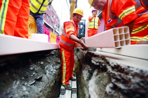 2017年朝陽架空線入地整治項目讓街道告別“蜘蛛網”。(資料圖)王穎/攝