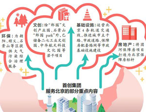 不僅僅在文創、環保産業,首創集團各個主業板塊也都朝着服務首都的方向積極努力。房地産方面,通過資源整合及合作模式創新,首創經中公司加快推動團河保障房項目建設,並成功獲取臺湖、同仁堂等保障房項目;金融方面,首創擔保正式推出針對北京科技和文創中小企業的專屬擔保産品,提供融資支援,針對科技企業的擔保額度可以達到2000萬元;基礎設施方面,旗下的北京綠基公司穩步推進城市主幹路、市政道路、保障房配套路網等市政基礎設施建設任務,重點圍繞保障房建設、棚戶區改造,積極拓展政策性一級開發項目。