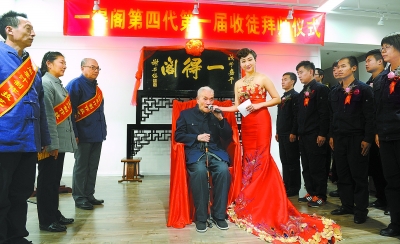 作為國家非物質文化遺産的一得閣墨汁製作有了第四代傳人,10月28日,在律師的見證下,尹志強、何平、張永林三位墨汁製作大師收徒儀式舉行。