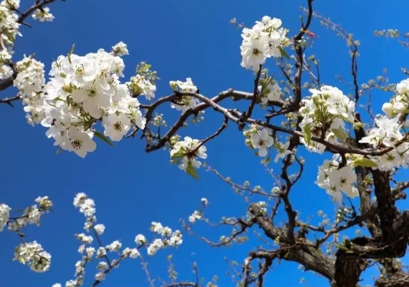萬畝梨園位於北京市大興區龐各莊鎮梨花村,是目前北京市面積最大的古梨樹群。村內所種植梨的品種有30多種:紅肖梨、京白梨、酥梨、子母梨、金把黃鴨梨、糖梨等,品種相當豐富,而且味道十分出眾。這裡的梨樹80%以上樹齡都超過100年,其中樹齡最長的已達410歲。這些梨樹飽經滄桑,展現在我們眼前,來這裡不僅春天可以賞花,秋天也可以採摘,門票和停車都是免費的。順著人群往裏走,滿眼都是梨樹、梨花,一眼望去看不到頭。遊人可以穿梭在白色的花海中,拍照留影,記錄這美的瞬間。