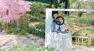 “歡迎大家加入粉絲團,選擇我們的團購券,這個櫻桃季享受無限暢吃。居家的朋友可以發我一個地址,我們採摘好,線上發貨寄給您。”曹艷紅是西集鎮沙古堆村曹女陽光農場的主人,她的直播間就設在果園裏。面對鏡頭,過去曾在廣告公司上班的她侃侃而談,與粉絲親切互動,一聊就是兩個小時,吸引了近萬人觀看。