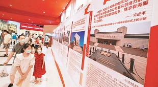 8月15日,“凝聚的歷史 永恒的初心”紅色雕塑展在中國人民抗日戰爭紀念館開幕。展板上,16座紅色雕塑定格了百年來重要歷史瞬間。展覽以黨領導人民進行革命、建設和復興的重大事件、重要人物為重點,帶領觀眾感悟中國共産黨從小到大、由弱到強,不斷從勝利走向勝利的光輝歷程。