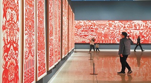 1月1日,中國工藝美術館、中國非物質文化遺産館恢復開放。在展館外,運用中國剪紙藝術語言創作的雕塑《中華有魚》驚艷亮相,融入了祥雲、彩蝶、中國結等傳統吉祥符號,為新年伊始增添了吉祥喜慶的氛圍。當天,該館一口氣推出“祭如在——中國藝術研究院藏明清祖容像展”“影戲人間:陜西非遺皮影展”“松納柴器——景德鎮陶瓷柴窯燒造技藝展”“天地人文——劉恒甫公共藝術展”四大展覽,為市民奉上元旦假期的饕餮文化盛宴。