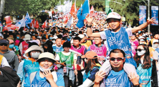 2023春季北京國際長走大會昨天在房山舉行,萬餘名長走愛好者飽覽美景,盡享運動樂趣。(安旭東 攝)