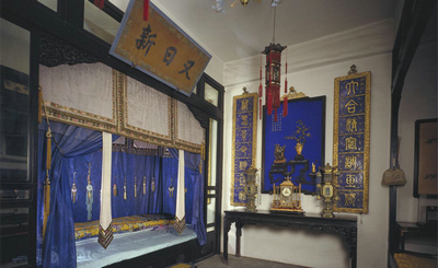 養心殿後殿區域以穿堂與前殿相連,共五楹,是皇帝的休息之處,也是目前能夠看到的唯一一處中國皇帝的臥室。清帝們往往于入冬至來年春天居住在此。正中偏東一間為皇帝的寢室,楠木雕花龍床上方懸“又日新”匾。西邊一間是梳洗、更衣、飲茶之處,北墻上懸“天行健”匾。
