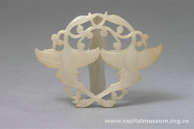 白玉雙鶴銜靈芝紋佩(金)