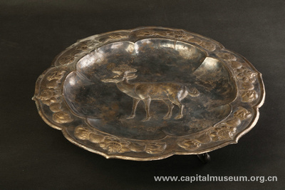 鎏金芝鹿紋三足銀盤(唐)