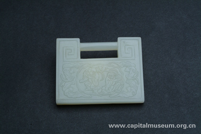 “和合二仙”紋鎖形玉佩(清)
