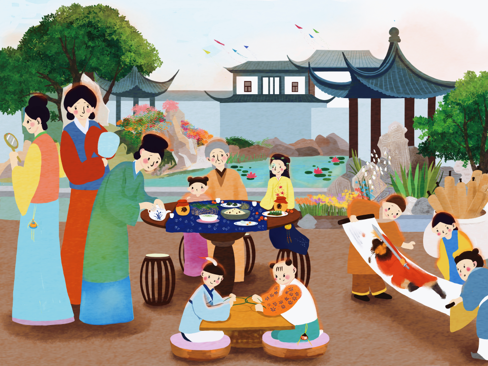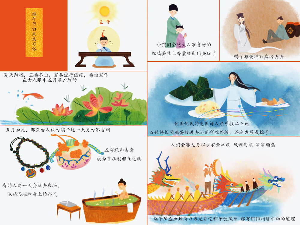 端午節是集拜神祭祖、祈福辟邪、歡慶娛樂和飲食為一體的民俗大節。(作者:吉林藝術學院動漫學院張鴿 指導教師劉麗)