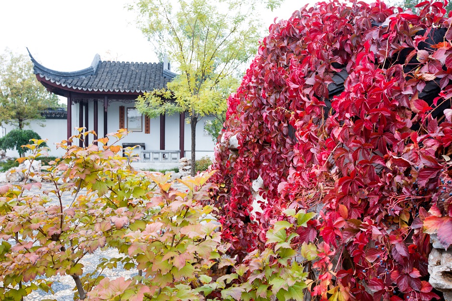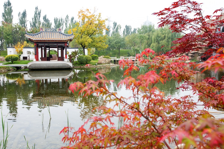 行走在園博園內,流連于古色古香的建築之間,看掩映在樹影下的紅墻黛瓦,別有一番情趣。