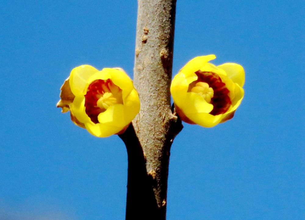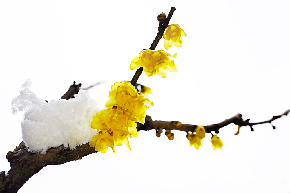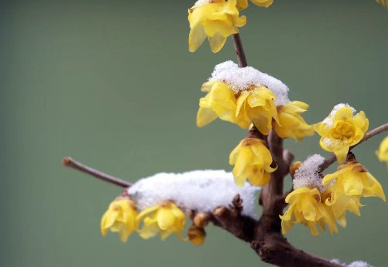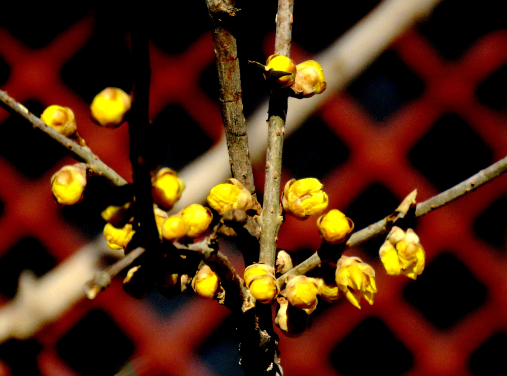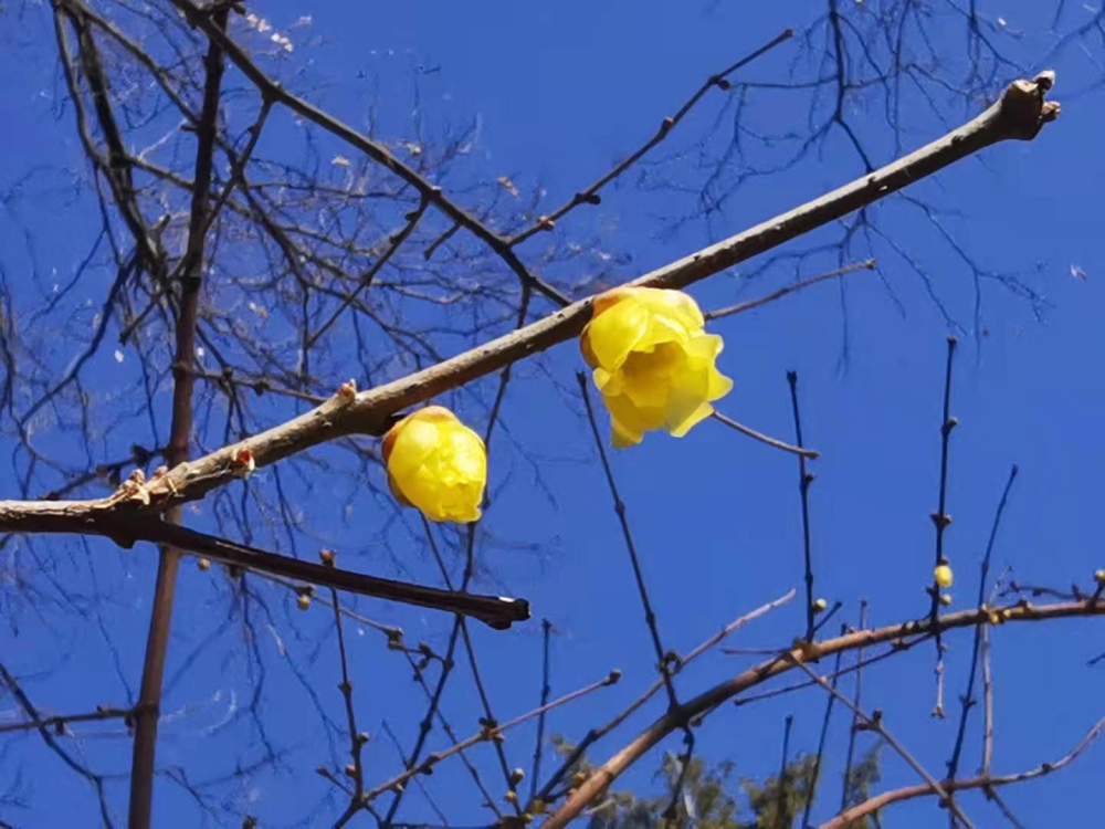 隨著氣溫上升,春意撲面而來。很多地方的蠟梅樹枝上花苞鼓鼓,黃色的臘梅花骨朵已經綻開,花朵清新可愛。(攝影:賀知捷)